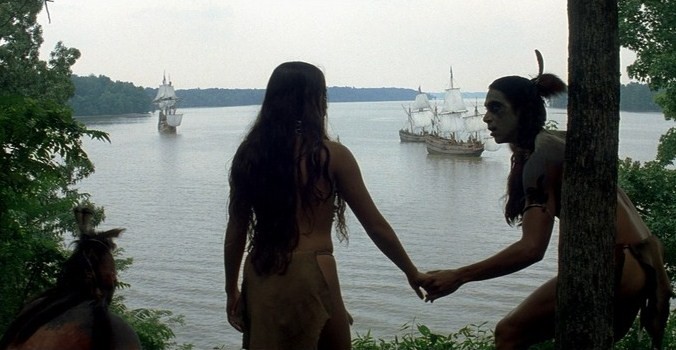 “God has given us a great inheritance,” Newport claims, “Woe the tide if ever we turn our back on him.” Having rushed in like fools where angels would fear to tread, the settlers have lost the favor of their God as surely as they lose the favor of the natives. Proving himself unethical by betraying the Algonquians trust, leading them to believe the settlers intend to leave come the spring, as surely as he proves himself immoral by leading on their princess (“What are your intentions toward her, toward them?” he asks rhetorically; they turn out to not be very honorable), the unscrupulous Smith has damned himself (“It was a dream. This is reality. Damnation must be like this.”), as well as his people. Having ignored God’s will, he prays for forgiveness in the thick of battle for all the mistakes he’s made in dealing with the natives and the havoc those bad policies have now wrought (“Lord, turn not away thy face. You desire not the death of a sinner. I have not harkened to your voice, let us not be brought to nothing.”). Smith may win the skirmish, but his English have lost their spiritual battle. In corrupting this new world with the sins of the old, they’ve forfeited God’s will, falling from grace. Paradise has again been lost to them.