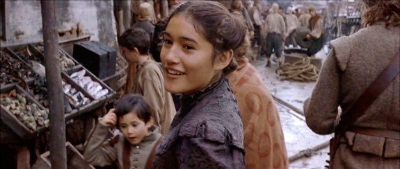 The unspeakable Smith screws Pocahontas over as surely as his men rape the virgin environment this flower child embodies, denuding it of vegetation, razing its trees (“Chop down every tree within half a mile of the moorage,” they’re instructed), stripping it of its precious resources, taking everything the earth has to give without replenishing it. Recklessly depleting her abundant store of fish, clams, and fresh water, they destroy the delicate balance of nature, and are left freezing and starving all within the span of a single season. Terry Malick has become the most ecologically minded of tree huggers. The New World is his hymn to conservationism, a eulogy to the desecrated landscape, and Pocahontas is nature in all her wonders. Like Chinese harvester O-San in Pearl Buck’s novel, she is an outgrowth of The Good Earth itself, symbolic of its bounty, continuity, and resilience. Pocahontas draws her strength and spiritual nourishment from the very soil, praying to her “Mother,” earth, with “We rise from out of the soul of you.” She seems such a sentient being, so alive to her surroundings, that her bared emotions are like raw nerves, as exposed and vulnerable as the roots of an upturned tree.