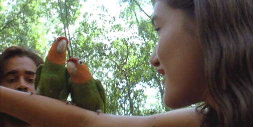 This may be Virginia as we’ve never seen it but thematically it isn’t exactly virgin territory Malick’s mapping here. We stalked through these grassy fields before, when they passed for Guadalcanal, swum through these same baptismal founts in the South Seas, heard similarly abstract ruminations in tandem with lucid, dream imagery. For this movie, Malick has greatly expanded on a subsidiary thread from The Thin Red Line which anticipated, in miniature, the theme of The New World. In that earlier film, an army deserter played by Jim Caviezl (who, coincidentally, would be cast as Jesus in The Passion of the Christ) stumbled across an undiscovered tropical paradise in the Pacific Islands, only to see it increasingly encroached upon and ultimately obliterated by WWII. America is the Paradise found in The New World, but the reckless Jamestown settlers succeed in annihilating it all the same.