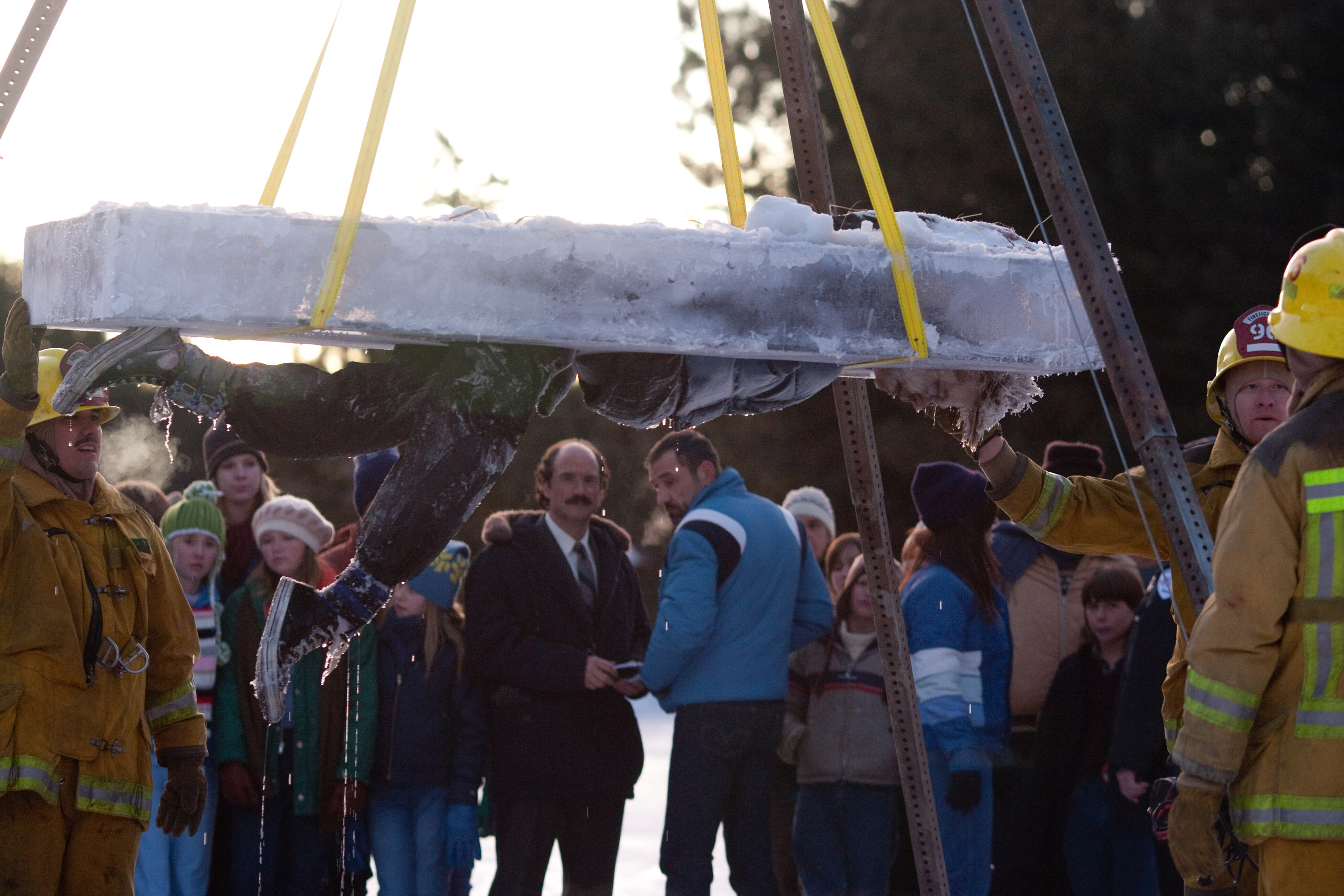 Defending himself when cornered during the field trip, the only weapon to hand is a metal pole whose phallic symbolism is accentuated by Kenny‘s threat to “shove it up your ass,” before he definitively emasculates Owen by throwing him into a ‘hole’ in the ice. In finally fighting back, it’s no coincidence that Owen, who isn’t regarded as a ‘real’ boy by his tormentors, would reach for this suggestively shaped, rather impractical weapon (it’s bigger than he is), or that he would be compelled to buy that penknife, with its own connotations of penetration. In behaving like a ‘real’ boy for the first time, which in the terms of his tormentors means a delinquent and a tough guy, he’s subconsciously trying to appropriate those parts of himself that he’s been convinced by others are lacking.