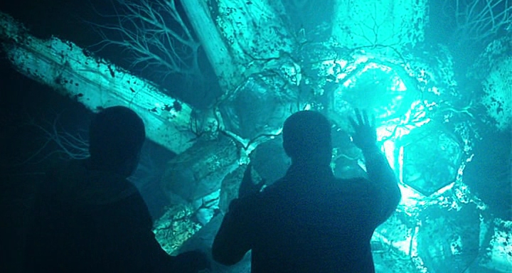 Clearly this 90-pound weakling is crying out for a miracle to descend from the skies and impart him with the bravado to take up for himself. And divine intervention we must assume it to be since what that pulsating crystal starfish actually is, where it comes from or what it’s doing buried in the middle of a forest clearing, is never explained. It has a strange electronic discharge that short-circuits the camera whenever Andrew gets too close, so we never see how the boys escaped after the sinkhole began caving-in around them and the picture went on the fritz. Like the aftermath of most raves, it’s all a blank in the mind.