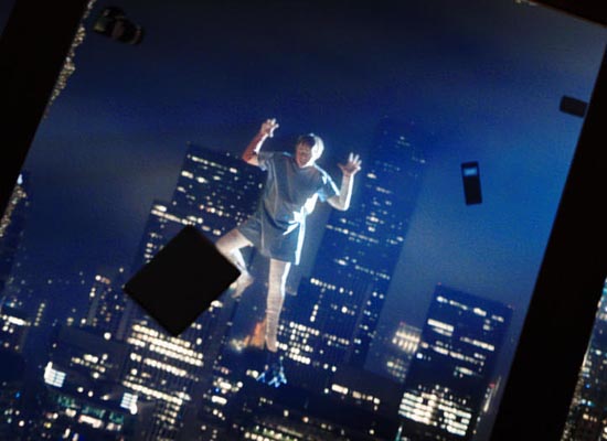 In fact, the very prevalence and accessibility of recording media in contemporary culture provides the basis for the movie’s most strikingly iconographic image as Andrew, floating outside the Space Needle, uses his telekinetic powers to draw to him all the phones from the spectators inside. Their focal point, he finds himself in the spotlight for the second time in his life, a magnet for negative attention. As the iPhones and Androids encircle him like a mobile cloud, the camera takes on their various views and perspectives, providing the astonished world with video that’s destined to go viral.