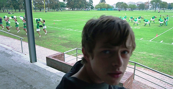 The constant taping is used more cleverly here than usual and the moviemakers have the good sense to incorporate it in a humorous manner that lets us know they’re in on the contrivance. Self-effacing, tongue-in-cheek moments include Andrew’s response to his mother’s question concerning who the audience is for his home video, “Just millions of people that are watching at home.” He’s more psychic than he realizes. Also amusing is the practicing cheerleaders’ umbrage at his filming them from the bleachers by the field, assuming he’s some voyeuristic perv, and the dealers on his street who suspect he’s a narc collecting visual evidence for the cops. Less amusing is when he’s accosted by a drunken older guy at the rave for filming his girlfriend dancing and nearly gets his nose broken, along with his video recorder. Character and camera have become so interchangeable in our mind by this point we no longer know where one ends and the other begins.