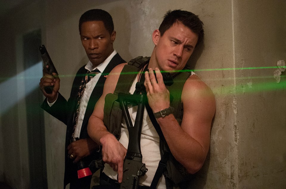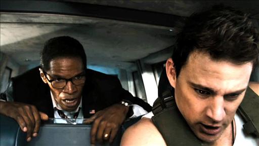dialogue in a breathlessly self-conscious fashion. He throws his lines away as if he wanted to get them out of his mouth before he forgot the words or was shamefacedly mumbling them under his breath, yet no one could blame him for not wanting to speak such drivel out loud. Ever since Jonah Hill turned him out in 21 Jump Street, Tatum has seemed agreeably capable of sparking with just about any co-star and he matches up well with Jamie Foxx here. The two get along like a house on fire and their amusing repartee may be intended to recall the Lethal Weapon movies with Mel Gibson and Danny Glover. Jamie Foxx won an Oscar for his devastating Ray Charles impersonation, and in recent years he’s been working out a similar spot-on impression of our standing president, which he finally gets to deploy here. But while he holds the screen with more effortless aplomb than his co-star, there’s not enough substance to Foxx’s Obama impression to sustain a featured part and Vanderbilt hasn’t written any sort of character for him to play beyond the national figurehead.
