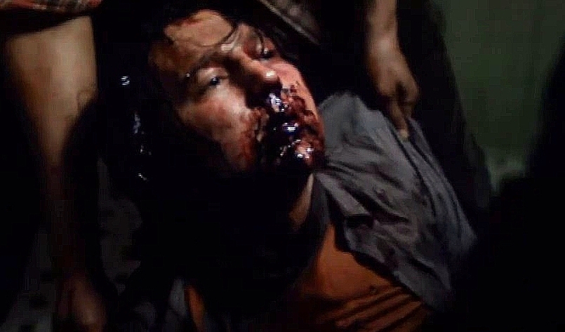 Having been sexually preyed upon as a child actor in the daring little 2001 indie drama L.I.E., the role that first brought him to attention, Paul Dano has grown into such a perfect physical specimen of a pedophile himself (the greasy hair and oversize glasses add a great deal to the illusion) we simply assume he did it, especially after he’s cornered by the police and tries to flee the scene. It’s easy to jump to preconceived conclusions about people. Dano gives a devilishly clever performance here, though most of his acting is obscured by those glass bottles covering his eyes or buried beneath a ton of black and blue makeup, stage blood and prosthetics which chart his ever escalating torture. Not since John Hurt in The Elephant Man has such persuasive playing been accomplished with so