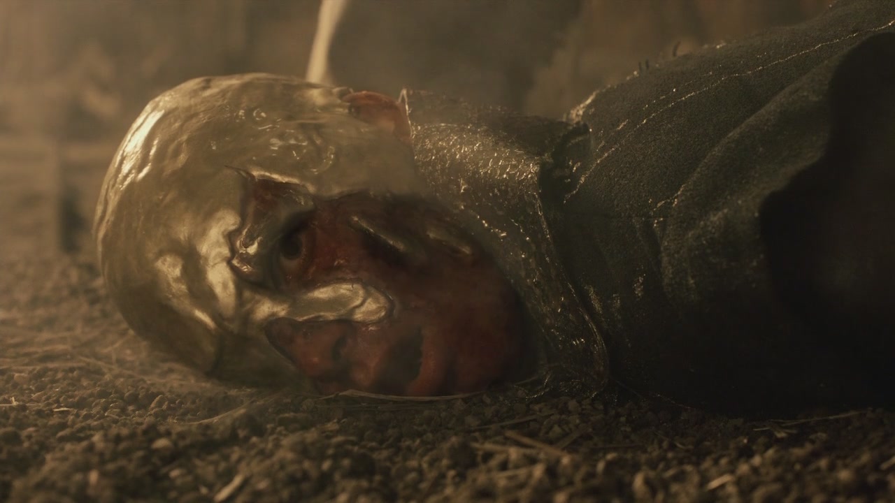 Mounted much like Roman Games staged for the Circus Maximus to bankroll the local economy with an influx of tourists, this celebration gives the great a chance at glory and the lowly a respite from their woes. “The common people pray for rain, health and a summer that never ends. They don’t care what games the high lords play,” and exhibitions like these are used as opium for the masses, distracting them from their more immediate concerns, keeping them complacent by temporarily dulling the pain, while the important games of state determining the forces that will shape their lives are played out elsewhere. In a mordant moment of black comedy, spectators who have gathered anticipating a colorful, courtly display are witness instead to what all the beautiful poems on chivalry and knighthood left out.