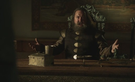 with that ballad he composes about the lion in the king’s bed having ripped off his balls. Trying to rile him up and incite him to action, his emasculating Lady Macbeth points out, “He’s attacked one of my brothers and abducted the other. I should wear the armor and you the gown.” Though it’s depicted as a dishonorable act, we actually find it gratifying when he wallops her, as Tyrion did Joffrey, rather than falling for her manipulative wiles, and more so upon her declaration that she’ll wear the bruise like a badge of honor as though she’d earned it fighting on the side of the angels, when he warns her to “wear it in silence or I’ll honor you again.”