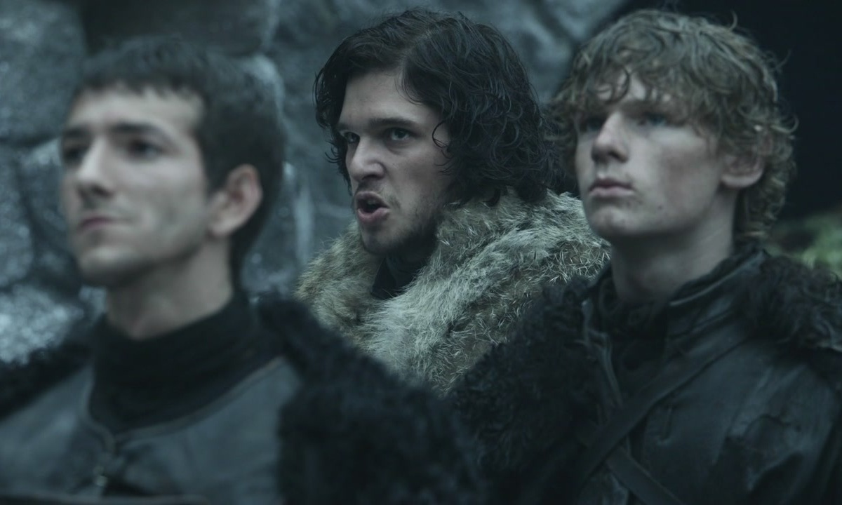 Snow’s lack of carnal knowledge means he won’t be feeling the angst of self-denial as torturously as the other men, but he seems far too eager to slap a chastity belt on his hands off zone, willing to lose it before he’s even learned how to use it (“Didn’t know where to put it?” Sam jests when he learns they’re both cherry). It appeared so easy for him to forsake the female sex in exchange for an all-male life at the fort full of sword fights and horsing around, his sexuality was unnecessarily