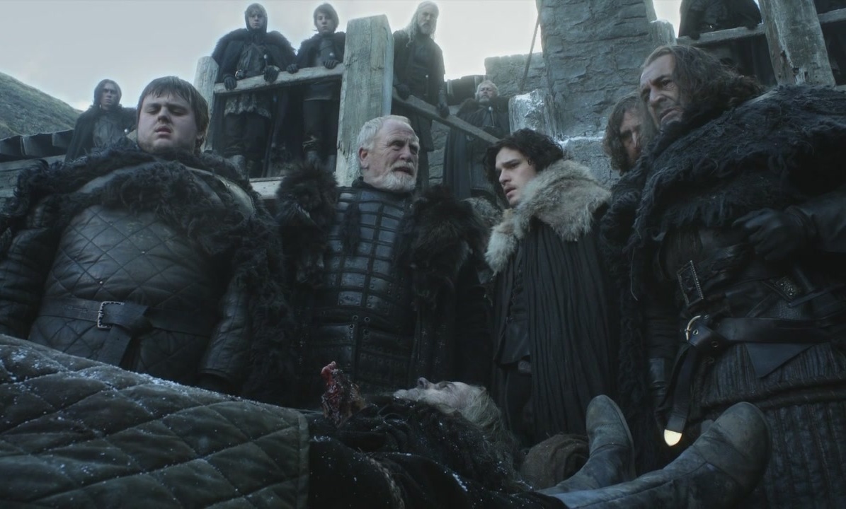 rescue Lord Stark (“I may be a bastard but he is still my father.”). Like Greyjoy, his allegiance proves to be with his adopted house in their time of need, despite his own tenuous standing in it. Still reeling from the news that he’s just lost his father, Sam asks a desperate Snow if he knows what happens to deserters, causing him to remember right along with us, back to the first episode and the deserter Ned beheaded according to the precepts of his own code of honor, which we realize was wrong in retrospect. Especially in light of how Ned himself would die and now that his impulsive bastard is in a similar bind, planning on going AWOL as well.