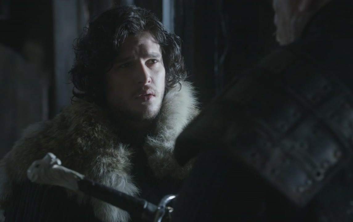 over into swaggering hubris. He believes that his swordsmanship makes him superior to the other soldiers in the company. “They hate me because I’m better than they are,” he rationalizes, after being attacked by his fellow recruits for showing them up on the field, “I’m a better swordsman and rider than any of you.” When he subsequently crows to his uncle of his stellar achievements, declaring that he’s better than every other man there, Benjen quickly corrects, “Better than no one.” Though he assures Sam that there’s honor in being a steward it’s another story when Snow is denied his coveted