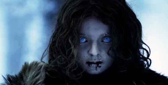 This brief bit leaves a vivid enough impression to burn itself into the mind so that we fully understand why people subsequently shudder at mention of this ancient evil which had lain dormant for millennia. The sub-human, living dead White Walkers from the icy North are not unlike those vampires who subsisted in the perpetual twilight of the Alaskan winter in 30 Days of Night, their arrival also heralding undying darkness. Whomsoever is touched by a White Walker becomes a White Walker themselves, blue-eyed, reanimated corpses with skin the pallor of bone so that they can blend easily into the snowy landscape.