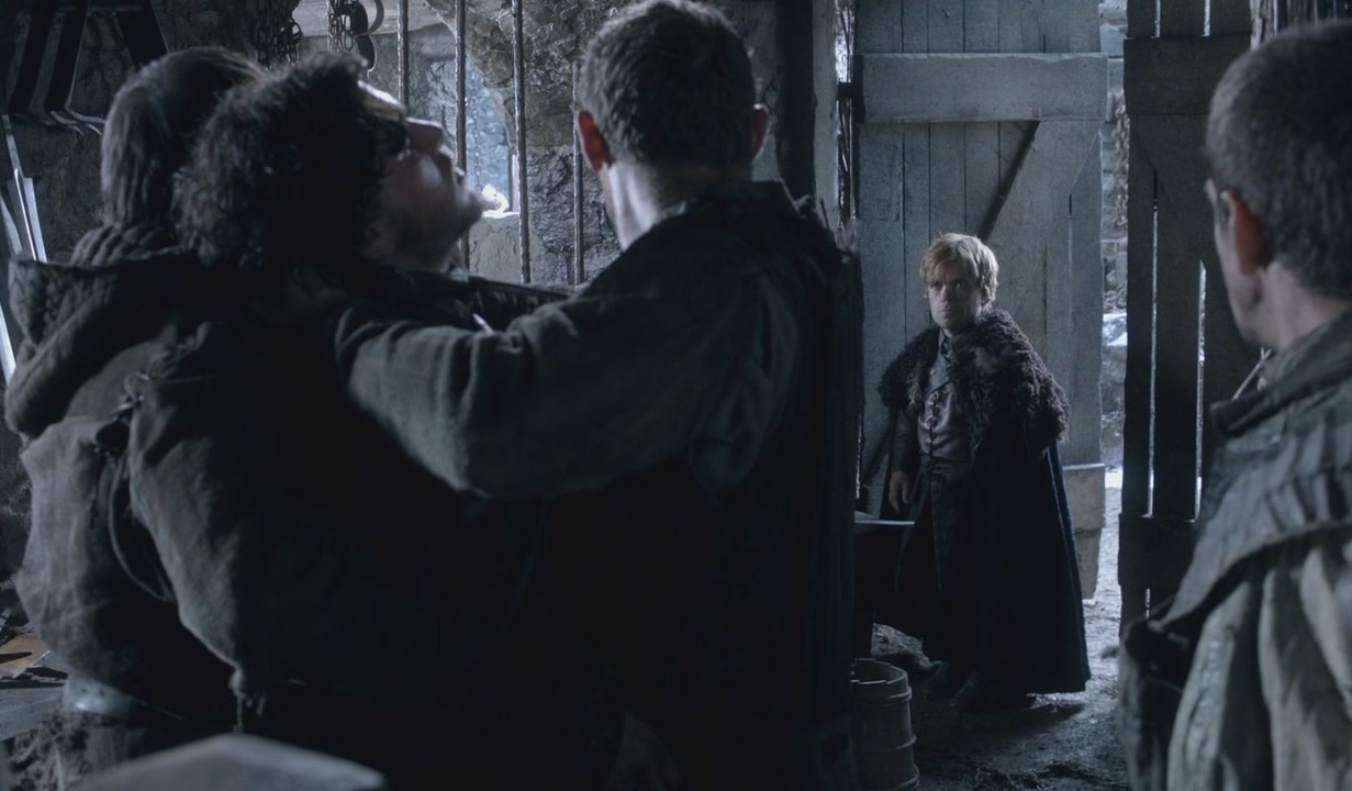 It’s the unimaginably wealthy Tyrion who pops the conceited bastard’s swellhead, bringing him back down to earth by informing him of the hard knock lives endured by most of the other men on the watch. He sagely counsels, “It’s a lucky thing none of them were trained by a master-at-arms like your Sir Rodrick. I don’t imagine any of them had ever held a real sword before they came here.”