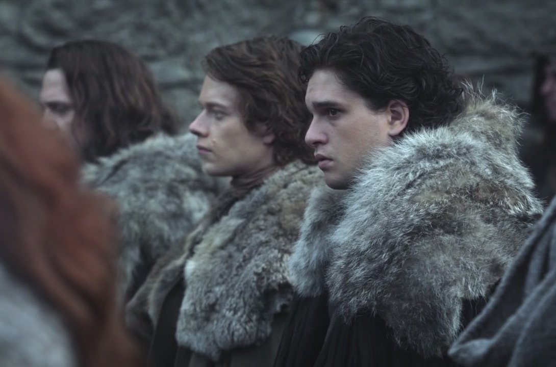But Snow finds it more difficult to relinquish the old life than he initially anticipated. The Maester of the Citadel asks “What is honor compared to … a brother’s smile?” and it is just such a love that compels Snow to desert the post he’s pledged to spend his life at and return to the Starks in their present crisis, breaking his vows in order to join the embattled Robb on his journey south (“I should be there, I should be with him.”), riding out to