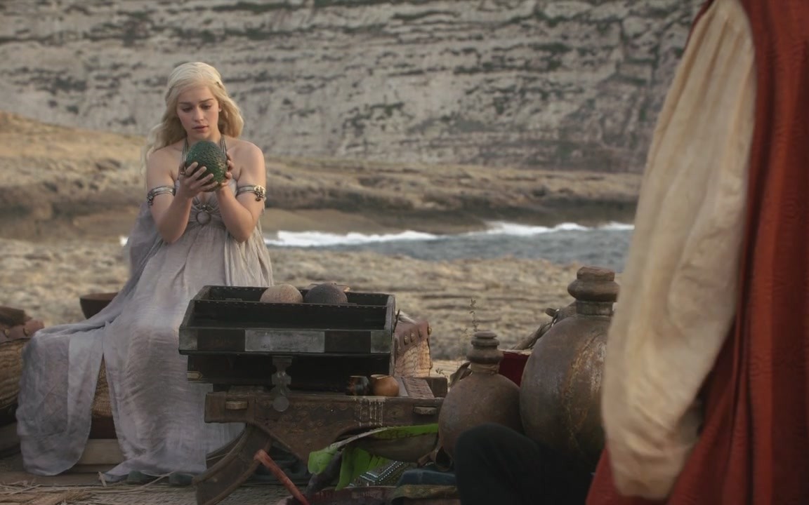 Exiled for selling poachers he caught on his land to slavers, unconscionable Viserys assures Mormont that under his regime he needn’t worry about being punished for such nonsense. When Daenerys speaks to Mormont however, she makes it clear that she feels slaving to be wrong and that he merited his status as fugitive from the crown. Past experience has sensitized her to the subject so she now shares the same mindset as Stark, who had been told “Ser Mormont’s a slaver, not a traitor. Small difference I know to an honorable man.” Of course her brother would not be opposed to slavery after having virtually sold his own sister like a liquidated asset, same way the handmaiden he buys for her was sold to the pleasure house by her mother at the age of nine.