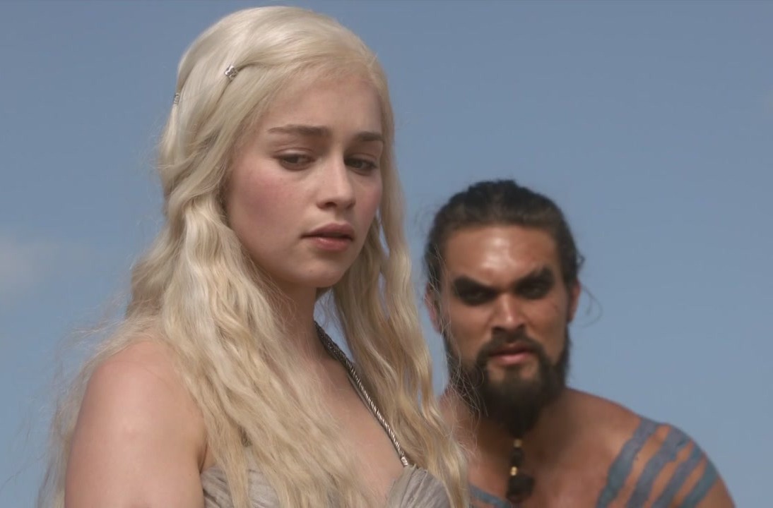 like a stallion, taking the dominant position on top rather than allowing him to take her from behind again, the way he would a slave, subtly shifting the power dynamics in their relationship (“Out there he is the mighty Khal, but in here he belongs to you.”). We’re surprised she doesn’t cut his hair like Samson to signify his subjugation. Having originally been given in bondage, she finds marriage to Drogo a liberating experience and ends up falling in love with him for empowering her, making it possible for her to stand up for herself, freeing her from Viserys’ venomous grasp and Game of Thrones would only have benefited from showing us more of the kinder, gentler qualities she responds to in her fierce husband during the first season.