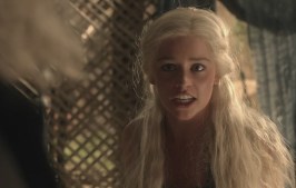 reluctance to cross water. Viserys however plans to employ them as an army to reclaim the Iron Throne his ancestors forged, using his sister as a pawn in this scheme to restore himself to power. He couches the trade in board game terms, “I know how to play a man like Drogo. I give him a queen and he gives me an army.” He considers his sister a fair exchange for 100,000 horsemen (though Ned assures Robert a million Dothraki would be no threat to the realm). Assessing what he has to work with, Viserys’ hands roam freely over Daenerys’ newly developed body and the way she blanks out while he molests her indicates it’s far from the first time. Treated as if her brother owned her, body and soul, Daenerys has such little say in her own affairs, she trails idly behind, a silent bystander, as he discusses her future with his host.