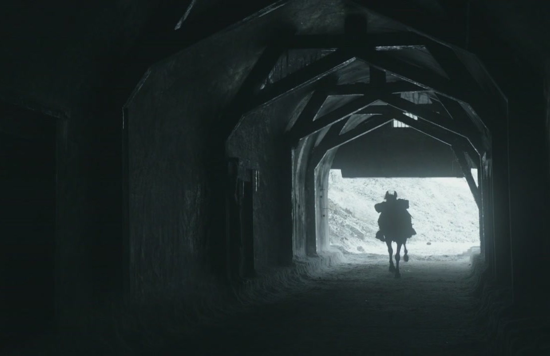 The production design combined with visual effects suggesting old matte processes is lovely to look at. Castles and fortifications set against imaginative backdrops have the lyrical texture of painting, making people appear as though they were moving through the airbrushed landscape of fantasy fiction art. Robb’s marching armies and the stretching Dothraki caravans are arranged in aesthetically pleasing patterns with all the disciplined choreography of a military parade. The cinematography by Matthew Jensen, Marco Pontecorvo & Alik Sakharov during season one is big screen caliber. And it fully earns the right to that designation since the fine visual quality far surpasses what one usually encounters on TV. The wintry settings are spectrally beautiful with snowflakes falling like eiderdown and the frigid atmosphere clinging to the trees, giving them a ghostly indistinctness. When the Starks search the dark woods for Arya after she runs away with her dog, their torches light up the sky like an orange haze, much as the torches of the Night’s Watch seem to be swallowed up in the darkness of the eternal night approaching as they recede into the passage burrowed beneath the Wall.