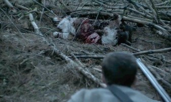 Like most clueless fathers in horror movies he refuses to accept the obvious until the devil is practically jabbing him with a pitchfork. When Black Philip had escaped his pen nearer the beginning, necessitating William’s taking the beast by the horns, it seemed to visually externalize his own struggles with his sinful state. He was wrestling with the devil like some frontier figure out of American folklore. But it’s William’s unwillingness to believe a goat could literally be Satan and facetious admission that if such were the case he would, in his desperate straits, have forged his own Faustian pact (“If that old billy be the Devil, I’d have danced with him myself.”) that ultimately leads him to his end. Accepting his divinely ordained fate, he drops his prized ax at the very point he could have put it to best use (“Get the broadaxe and cut off her head. Get a narrow axe and cut off her head,” a feverish Caleb had chanted in his stupor), allowing himself to be gored to death and rammed into the mountain of useless wood he’d stored up against a winter he’ll never see.