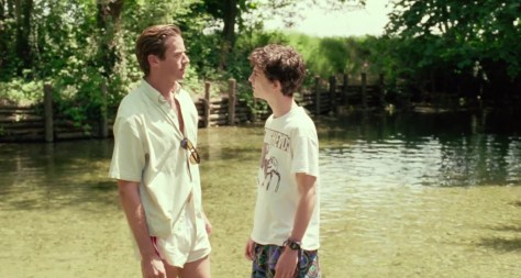 But refusing to be silenced (“Does that mean we’re on speaking terms, but not really?”), Elio dares reveal even more of the secret self he’s kept long hidden, willingly inviting this man who had taken up residence in his room against his wishes, to his other cloistered refuge at a secluded brook down the glen (“This is my spot. It’s all mine. Come here to read. Can’t tell you the number of books I’ve read here.”), which may have had more relevance if we’d ever been shown a lonely, solitary Elio at this secret, sweet spot before. It makes us feel the same way we do when Oliver looks lovingly down on the sleeping Elio their last night together, and the camera flashes to scenes of the two we were never shown, making us feel we’ve missed something, the way we do when the director preempts their final phone conversation, cutting us out so we never hear how things are resolved between them, if Elio admits he does mind, as Oliver foolishly asks him. At moments like these the movie makes us feel as left out as Elio previously had, when Oliver was avoiding him.