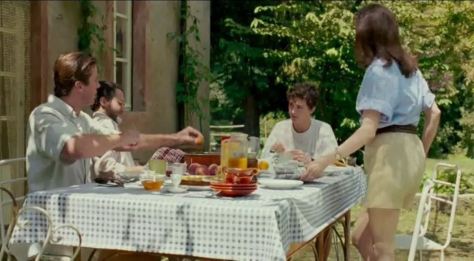Oliver convinced himself he was sacrificing his sexuality, putting his hetero feelings on hold, simply to help the conflicted Elio feel better, such as when he kissed him in the field (“Better now?”), making the ultimate sacrifice so that the impressionable kid wasn’t emotionally scarred for life. But it becomes clear at the breakfast table the morning after they make love that Oliver has begun to feel something deeper, something finer, for Elio as well, despite never having wanted to. It’s Oliver after all, not Elio, who initiates their intimate swapping of identities by asking him to call him by his name. So we’re disappointed when he chooses the path of least resistance he does at the end, as though he’d just been killing time with a permissive gap year to sow his wild oats before his real life began, as if Elio were just a fleeting summer fling. When in Rome… The seemingly courageous, self-confident Oliver, who expresses pride in being Jewish, making Elio, who wants to take after him, wearing his same pendant and later the same shirt, see he should take pride in the fact as well, is ultimately too afraid to accept his own desires.