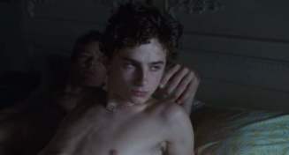 healthy development. Brazenly daring viewers to call this by its name, such visuals tend to play directly into the most prevalent prejudices weaponized by the evangelical right (especially in the early ‘80s) to drum up fear and hatred against the gay community. But the movie discreetly ignores the eyebrows it raises while still, by design or happenstance, visually cross referencing our far more junky pop cultural memories of such earlier Italian standard bearers as Death in Venice and Fellini’s Satyricon, in which tempting, underage Lolitas led strong men astray. With his ravishingly inky mop of uncombed Renaissance ringlets, Guadagnino paints Chalamet, who appears just a slip of a boy, with the slight waifish frame of some French gamin, as though he were a tantalizing urchin stepped off a Caravaggio canvas, the sort to make even good men go wrong. He’s kept in a perpetual state of half undress for the most part, as the camera lingers at appreciative length over his slim and gracile figure, as he slips on his swim trunks or leans over the bed to present a fetching posterior view in his denim cutoffs.