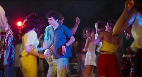 Yet despite Oliver’s less attractive features (showboating during that volleyball match, reveling in being the center of attention, and unceremoniously swiping the bottled water Elio was handing a friend), Elio is constantly being assailed by ambient references to “how cute he is,” his “movie star” looks and “who wouldn’t want to be in her shoes” when Chiara (Victoire Du Bois), a local girl with a crush on Oliver, dances with him at an outdoor bandstand. All the surrounding talk seems subliminally intended to implant such thoughts in Elio’s own mind, keeping him thinking about Oliver and his undeniable attractiveness. It’s an empirical observation he’ll later freely acknowledge when Chiara stops beneath his window to chat, mouthing her own thoughts that “He’s good-looking too.”
