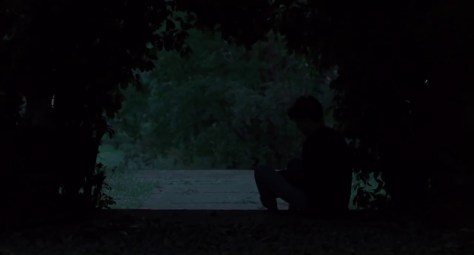 But though we’d been similarly set up to expect some sensitive twist on Elio’s prediction that Oliver would take his final leave with his offhand trademark “Later,” neither seeming eventuality transpires. Laying everything out in the open, hoping his life would improve, Elio fears it may have just made things worse as Oliver seems to turn on him, again going out of his way to avoid him, so he needn’t confront himself or his own desires. Confusedly strolling over the grounds the next morning in a shaky, handheld tracking shot, rubbing the nape of his neck as he frequently does when at a loss, he sees Oliver draw away from the window the instant he looks up, so he won’t have to engage with him. Left hanging after drumming up the courage to make the first move, Elio, who expected a seemingly responsive Oliver to take him out that very night, fruitlessly waits in the grove all afternoon for him to return, accompanied by Sufjan Stevens’ song, with its illuminating lyrics (“And I would say I love you/But saying it out loud is hard/So I won’t say it at all… And words are Futile Devices.”).