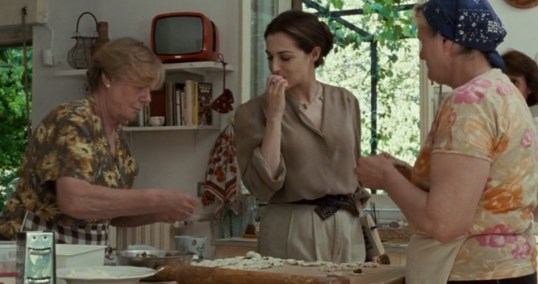 By referring to the new arrival as a ‘usurper’ in this way however, Elio is really forecasting the fact that Oliver is soon to usurp Marzia’s place in his bed. And when the bicycling Oliver, on his way out of the courtyard, passes the bicycling Marzia on her way in, the movie strengthens the clear parallel between their dual positions in relation to Elio. Oliver even calls Marzia over when Elio shrinks from his touch during the volley ball match, so she can serve as surrogate by continuing to rub his shoulder, making the massage seem less sexually awkward. Elio and Marzia begin the film looking down into the courtyard on Oliver’s arrival, just as Elio and Oliver will be looking down the first night they sleep together, anxiously waiting for the guests to depart, with Oliver by this point having definitively ‘usurped’ Marzia’s place beside him. There’s a similar circular structure carried forward throughout the film. Just as Oliver skips dinner the first night he arrives, Elio will go missing (as his father remarks “I missed you at dinner last night.”) when he returns from his trip to Bergamo; while the film ends on Elio finally responding to his mother’s call to dinner. Elio throws over Marzia for another man, same as Oliver will throw him over for a woman. Marzia forgives Elio for breaking her heart, same as we assume Elio will forgive Oliver. Such smooth symmetry affords a pleasingly circular sense of closure to the director’s triangulated overview of human desires in his trilogy.