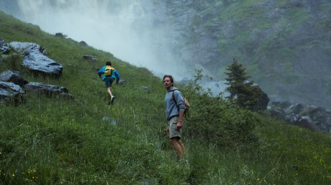 Driving this health nut to break from his regime by picking up the nasty habit of smoking, kindling their romance by lighting joint cigarettes as though we were in Now Voyager, Oliver is convinced Elio is going to lead him even further down the wayward path. It’s why he goes out of his way to avoid Elio, and the temptation he constantly lays before him. Yet this same look, back over his shoulder, or one very much like it, will reappear later as Oliver, now expressing astonished appreciation at life’s wonders, follows Elio in the general direction of paradise, up the side of a refreshingly misty waterfall, having openly embraced his own desires and found there was nothing to fear after all.