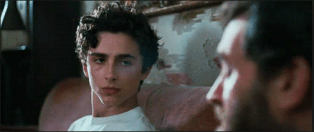 He can make his Elio delightfully coltish and gauche one moment, expressing his delight by twirling about before happily falling on the bed for instance, letting Chiara and Marzia baby him when he gets his nosebleed, or curling up in his father’s lap while his mother reads him a bedtime story, and the next, sexually aware and amatory in an almost frighteningly direct way, swaying seductively as he assures Oliver that he is indeed saying what he thinks he’s saying, raising Oliver’s letter to brush across his lips in a ghostly kiss, as he later will the fingers that had just been holding Oliver’s hand the instant they unclasp, or sensually biting at the rag he’d used to stop his nosebleed while Oliver massages his foot.