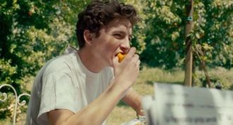summed up Elio himself. But despite what he does to that poor, defenseless fruit, it’s what transpires between the two lovers afterward that’s far more bruising. When discovered in the attic by an unexpectedly appreciative Oliver, Elio’s too ashamed to come clean, but can’t disguise the pitiful remains of his self-abuse left abandoned on the dresser. The scene starts out playfully, with the saving grace of tickling the funny bone, as an amused Oliver, who can’t quite place the unfamiliar taste, realizes what Elio has been up to and ribs him about his insatiable desires – “Oh I see! You’ve moved on to the plant kingdom already. What’s next, minerals? I suppose you’ve already given up animals. You know that’s me.” Yet things swiftly take on a muddier emotional palette, where one’s darkest desires are unloosed, the shade Oliver earlier spoke of fearing when he refused to go any further in that field. The still relatively innocent Elio, disgusted with himself for succumbing to his own sexually voracious appetites (“I’m sick, aren’t I?”), can’t understand why Oliver would want to humiliate him further by taking a bite out of the peach, an act with its own biblical and fairytale connotations