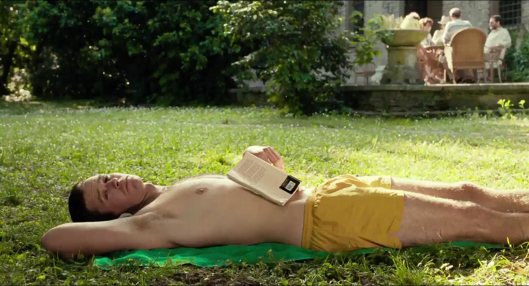Call Me by Your Name succeeds in creating a consistent homoerotic haze with these lightly muscled men laying around in the briefest of shorts, as the lazy summer sun tans their olive skin, visuals that tend to evoke the paintings of David Hockney. The actors must have been shriveled as prunes once principal photography wrapped, and it’s the repetition of such scenes that gives the movie its sense of languor. But in all honesty these intellectuals’ privileged lifestyle of sunning and swimming serves a clear thematic through line. In A Room with a View it was a swimming hole skinny dip that offered the only sense of respite from social constraint once the English characters returned
