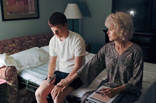 with its assault on traditional family values and encouragement of gender role reversals would lead to – a lost generation of gay boys raised in broken homes. But no matter. As the Kidman character states “… a mother knows when something isn’t right,” the backward misspelling of God’s name in the camp handbook warning the proofreader in her that this miracle cure may not be quite divinely inspired. Though what her response may have been had there been no spellcheck errors is a moot point. “They say sometimes you gotta hurt a child in order to help them,” but it slowly dawns on her that despite its name, there’s no loving action evident behind the abuse being dished out at camp. Its ideologies are anathema to true Christian virtues. Beginning with her rousing reappearance at the clinic to rescue her son, Kidman’s characterization, with its pleasing echoes of Lion, leads up to another fine, ‘for your consideration’ soliloquy that lets her, if not quite roar, meow and spit in an appealing manner, as she bemoans her well-bred training as a southern lady
