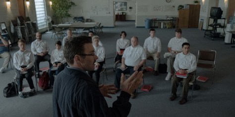 says he hasn’t struggled with the same feelings they have, but as a recovering addict and ex-felon can understand the demons driving them. And yet despite his claims, his acquaintance with homosexuality isn’t as alien a concept as he likes to make out, remarking “when you’re in prison you’d surprise yourself what you can do to fit in.” When Brandon corners Jared in the bathroom stall near the end, under the pretext that he’s supposed to be monitored at all times, and begins making sexually suggestive remarks, he becomes a prison warden back in the pokey, and we fear the situation is about to take a dark, drop the soap turn. With Jared having been driven into the camp by an instance of sexual abuse in his past, the cure proves worse than the complaint. He should’ve been sent into intensive psychotherapy to process the trauma, rather than this halfway house where he continues to be harassed and forced to relive his rape all over again. As patient after patient is removed from the facility, it becomes clear that the real problem is occurring behind closed doors, inmates abjured once released not to discuss what goes on inside, same as victims are silenced by their abusers.