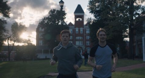 Of course gay-themed movies like Boy Erased invariably give audiences the erroneous impression that everyone on screen may be sexually suspect, forcing us to scour the cast to try sorting out who may or may not be. Like the paranoid counselors, we can’t help reading far more into every longing glance and innocent attention than is really there. Such as when fellow camper Jon tells Jared to stop staring at him all the time, giving him the heebie-jeebies by fixing him with a come-hither look that’s wholly imagined on his part. All the same, in this frame of mind every guy seems a potential come on, such as Henry (Joe Alwyn – his feline features may remind viewers of Brain Krause), that athletic blond who jogs with Jared around his Christian college campus, and who observes what “a good fit” the two are together.
