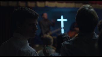 The converts are required to publicly share their most intimate personal stories of same sex attraction not just in front of the entire congregation, but in front of a recording camera for posterity. The rationale for this public pillorying isn’t clear, unless additional shaming were considered part of the healing process, like those confessionals in Novitiate where the sisters laid their souls bare for picking over. Sara is forced to graphically relate her first experience with another woman in front of a room full of horny teenage boys, as if she were being used to titillate their latent heterosexuality, teasing it out with the explicit talk. Offering himself up after what he witnessed with Cameron, as the next sacrifice on the altar of sexual persecution, Jared’s final testimonial becomes a push you, pull me confrontation with the satanic Sykes who challenges him, trying to dig into him, to see what he’s made of.
