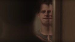 While Jared feels compelled to hear him out and absolve him, like a Catholic priest delivering last rites, despite the personal turmoil he’d just been out through. Understandably confused and all out of sorts following this encounter, Jared’s left swimming against the tide as he moves down the hall in the opposite direction as everyone else. Having been turned around, he’s a nervous wreck who keeps a sharp eye out lest he accidentally run back into the predator who expectantly waits for him to appear for running practice as if nothing had ever happened. So before he ever enters rehab Jared already appears to be just half a person, part of him, the person he thought he was, having been peremptorily erased. Which explains the director’s repeated use of imagery that divides his face through lighting or architecture, to express his inner conflicts. And it’s a sword that cuts both ways. The effort of Henry, for instance, to remain chaste and holy by repressing his sexual drive, simply results in it percolating dangerously just below conscious level, before unexpectedly erupting in instances of sexual violence. Forcing himself on Jared is not even the first time he’s succumbed to his urges, alluding to “something bad (that) happened between…” him and another kid he’d nodded greetings to at the revival.