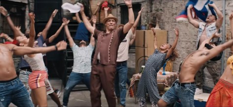 The calypso inspired score is full of danceable reggae, congas, merengue, mambas, bachata and salsa beats, with lots of bongos and maracas. There’s even a dance off that evokes Gloria Estaban. And Chu has given the more bravura numbers the full, showstopping treatment, allowing them to spark off their own kind of fireworks. Some of the dances are so energetic that they can’t be contained, spilling out into the congested streets. They recall those from the New York-set Fame (editor Kerstein worked on the 2009 remake), as does the typographical font used for the title itself.