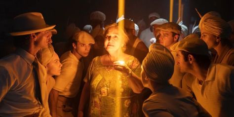 Framed like the image of Our Lady of Guadalupe on prayer candles, Merediz grounds the moving, slowing the pace so that viewers can better appreciate the richness of what’s here. The party at her home to welcome Nina back, better establishes the all-important sense of belonging the girl missed while away at college, than any of the manic, musical moments. And, as with many of the great American plays, the family dinner table also becomes the setting for dark family