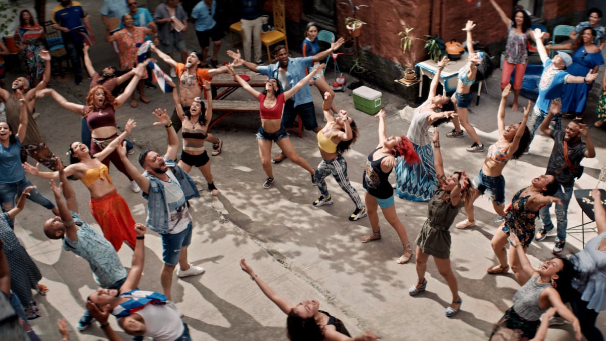 Stars: Anthony Ramos (Usnavi de la Vega), Melissa Barrera (Vanessa Morales), Leslie Grace (Nina Rosario), Corey Hawkins (Benny), Olga Merediz (Abuela Claudia), Jimmy Smits (Kevin Rosario), Gregory Diaz IV (Sonny), Daphne Rubin-Vega (Daniela), Stephanie Beatriz (Carla), Dascha Polanco (Cuca), Noah Catala (Graffiti Pete), Lin-Manuel Miranda (Piragua Guy), Mateo Gomez (Alejandro), Marc Anthony (Gapo), Olivia Perez (Iris de la Vega), Chris Jackson (Mr. Softee Truck Driver)