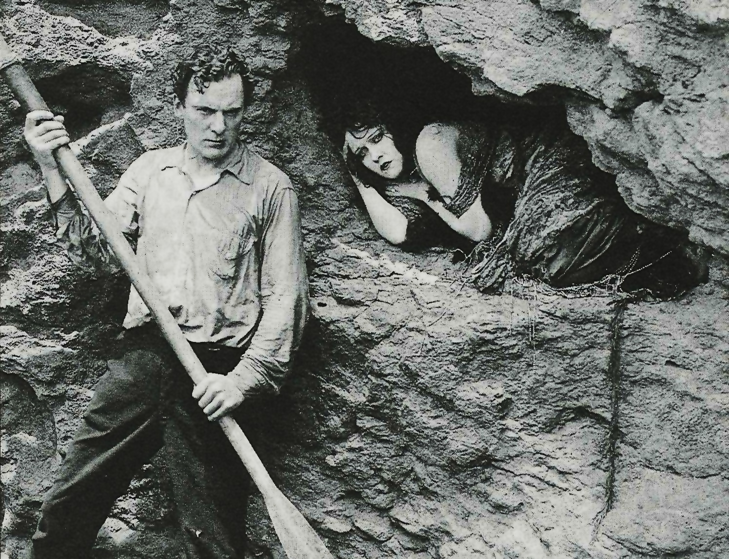 English butler.” Male and Female hands the actor a part tailored to his stiff-necked reserve, then cleverly subverts it so that he can loosen up a little by going native once shipwrecked. And Meighan’s self-contained underplaying certainly seems easier on our eyes today than the florid theatrics one more associates with silent movie acting. With that curly hair, strapping frame, and jutting brow ridge imparting the unfortunate impression that he’s wearing a perpetual scowl, Meighan bears more than a casual resemblance to such later DeMille stalwarts as Charles Bickford and Henry Wilcoxen. I think his best scene is when his butler’s gesture of obsequiousness, which had, for a time, disappeared entirely, reemerges once the rescue ship is sighted.