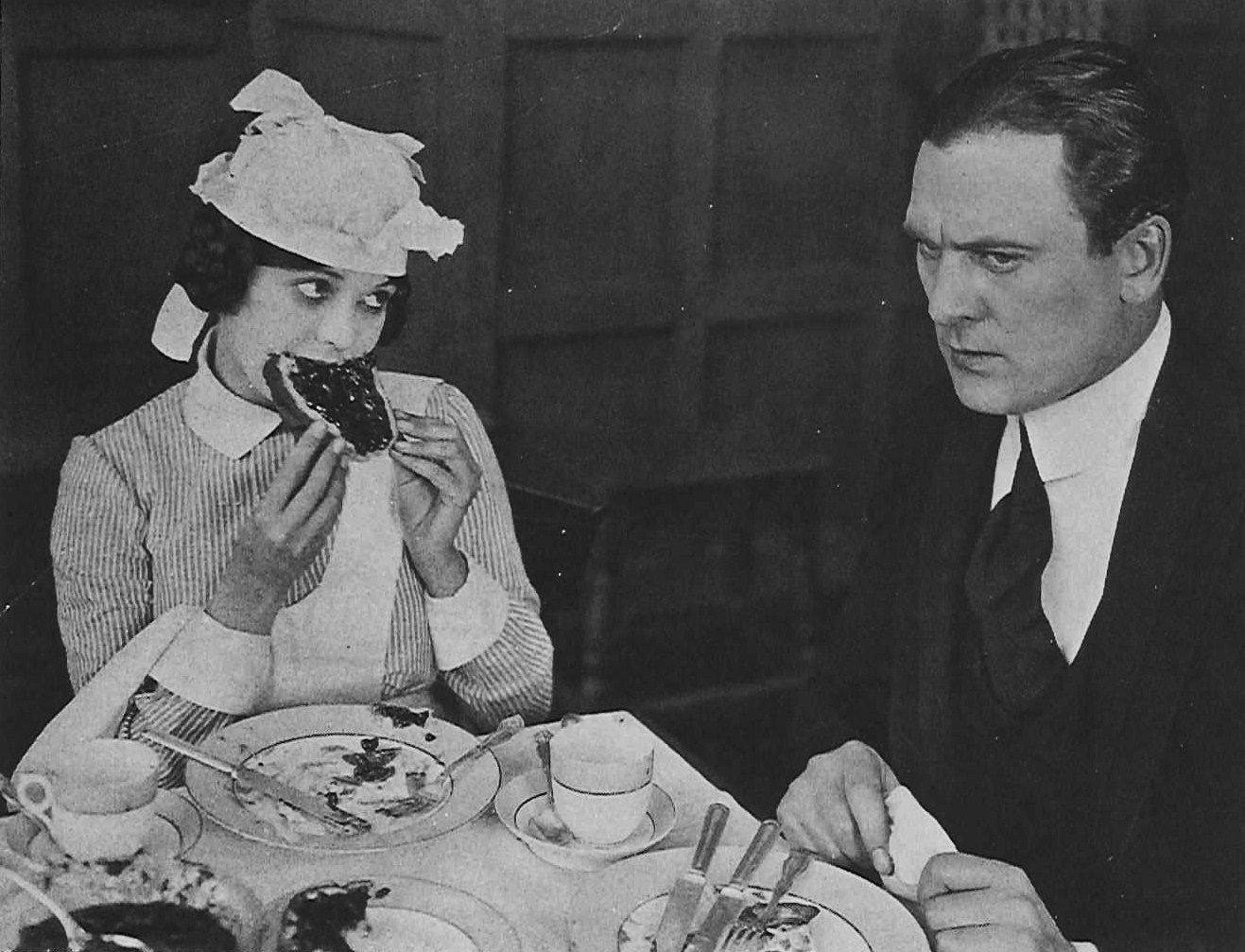 At his height, actor Thomas Meighan towers over the rest of the cast, diminishing them by comparison. His presence dominates the screen whenever he’s on it. Squaring off with Mary in a contest of wills over who her maid should take orders from, for instance, the director must crowd both women, along with Mary’s sister Agatha, and a boulder to the left, simply to balance out the frame. It seems almost comically incongruous for this