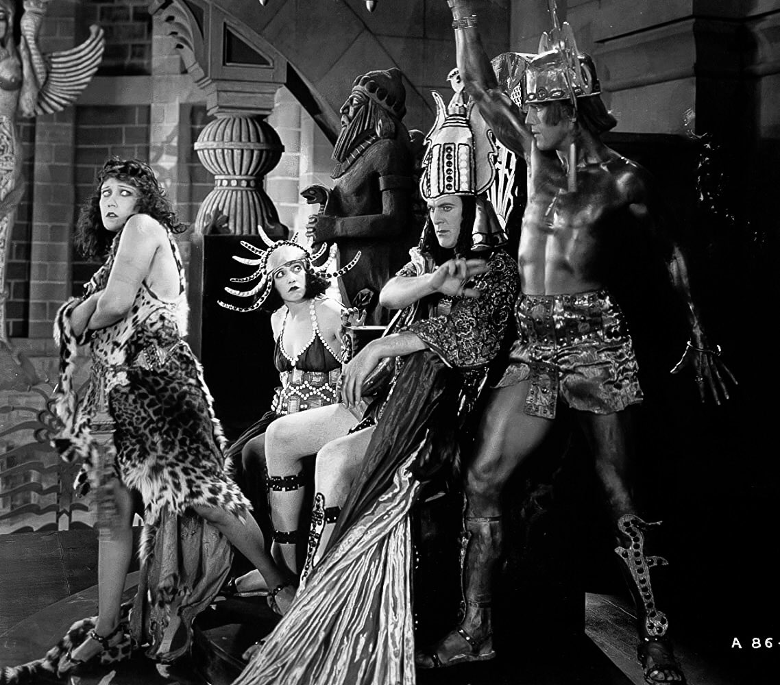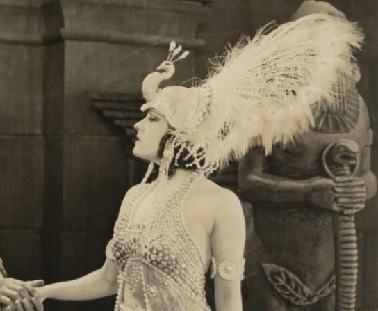 Under a new title, The Fall of Babylon, it had been re-released as a separate feature, earlier in the year, so was still fresh in the mind. DeMille had theatrical costumier Mitchell Liesen specially brought in to design Swanson’s fanning, peacock headdress, along with her skirt, which seems strung together from pearl drops, but his contribution was well worth the trouble and expense. In these fine feathers she’d make fitting kitty kibble for any self-respecting king of the beasts. Just leave it to Swanson, a notorious silent film fashion plate, to dress for the occasion.