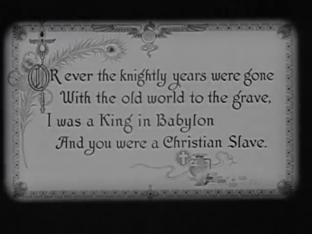 waxes nostalgic about the young Norma Desmond in Sunset Boulevard, I’d wager he’s specifically recalling Gloria Swanson in this film. He even took to calling her ‘young fellow’ out of respect for her boyish bravado when performing dangerous stunts. According to Swanson, DeMille let her select a priceless bauble from a platter of precious jewels, as reward for allowing that roaring lion to place its paws on her bare back, while recreating the 1908 Gabriel Max painting The Lion’s Bride. All synthetic and sybaritic, the two together reached the limits of artistically licensed insanity. DeMille may not have been a cinematic visionary like Griffith, but he was ahead of the curve in all the garish, gaudy ways that make his colossally
