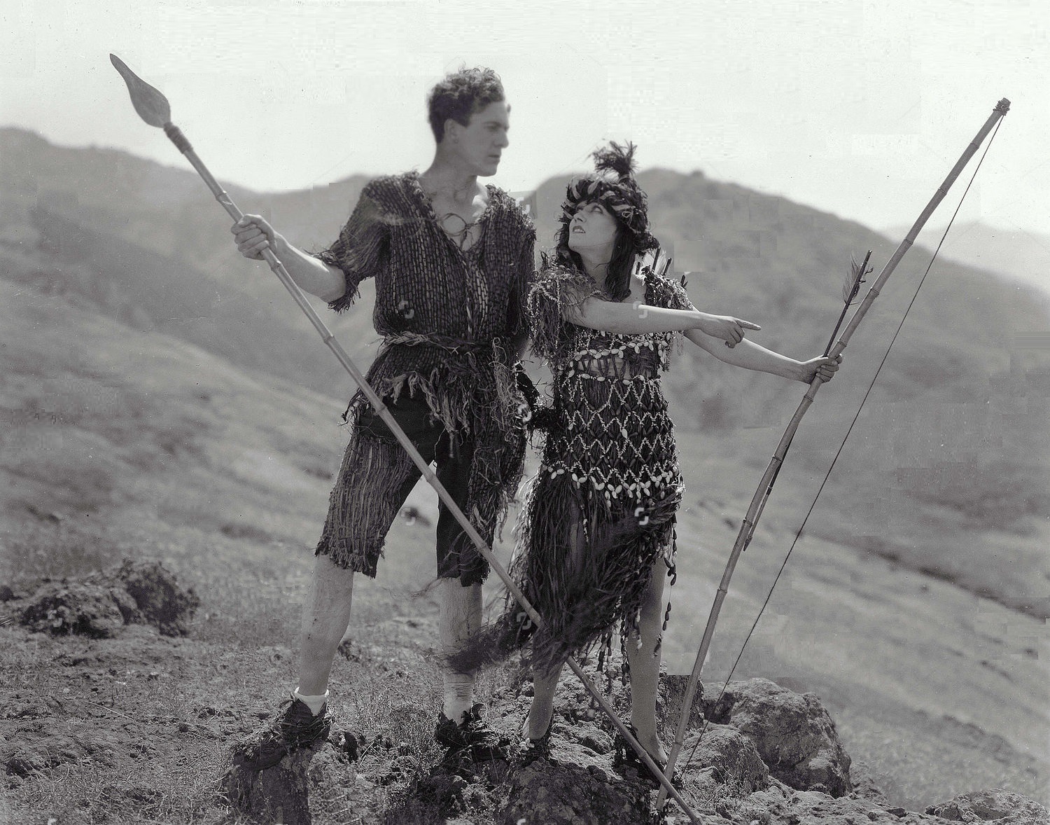 On the island, Crichton’s virility is constantly being stressed, whether assuming the captain’s role by going down with the ship, teaching Mary to shoot a bow and arrow, defending her from a leopard, or wielding oars, ram’s horns, axes, all phallic props intended to accentuate his masculinity. If the aged, impotent Lord Loam, the puny Woolly, and the