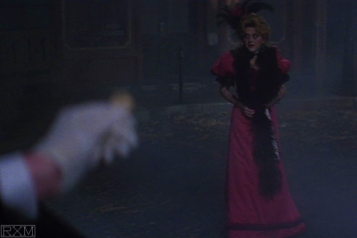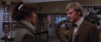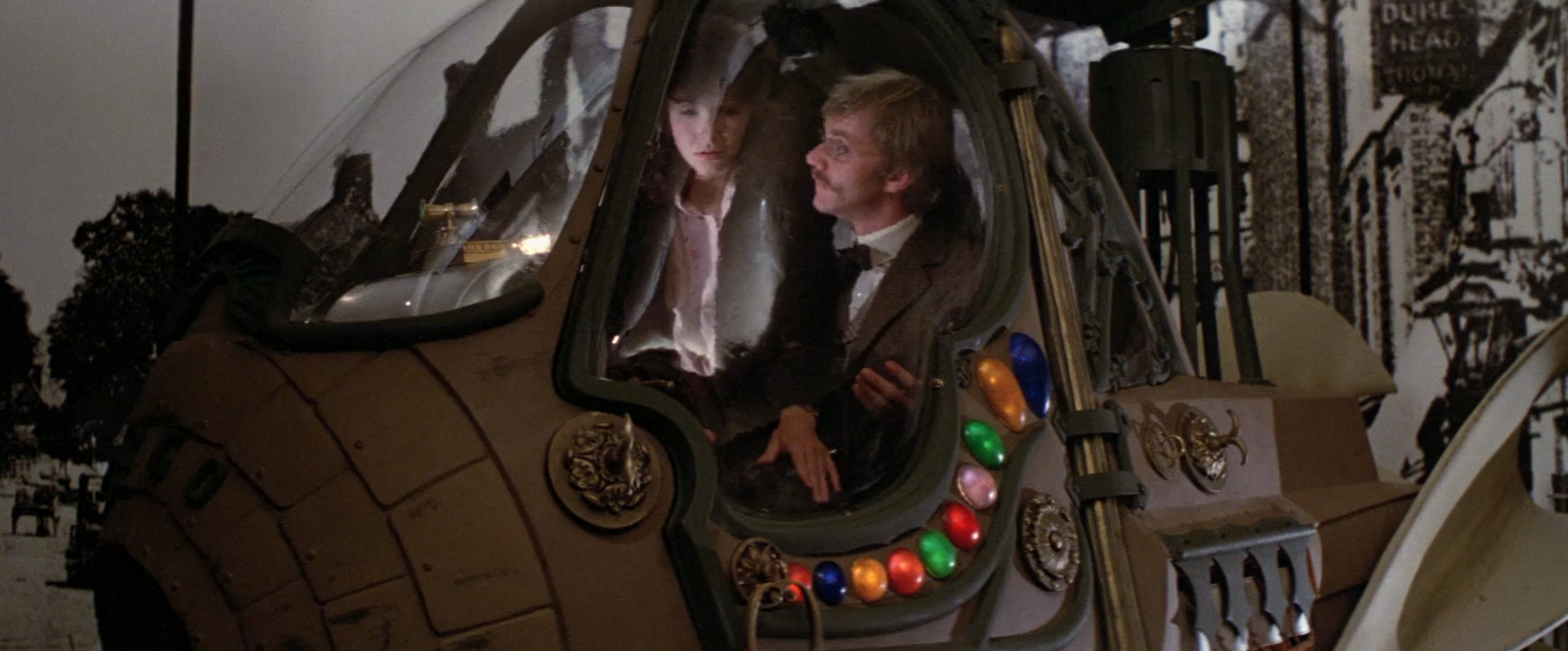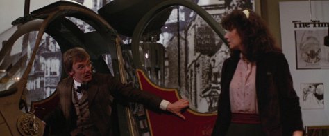 Considering the dark, dangerous night world Jack glides through, in which we’re not asked to sympathize with any of his victims, viewers might be inclined to agree with his soulless world view. That is, if it wasn’t for the way the moviemakers have conceived Wells’ romantic interest, Mary Steenburgen’s Amy Robbins. As a fluff-headed, slightly dizzy, thoroughly modern working girl (if one far different from the type the Ripper targets), she serves as living proof of how cockeyed Jack’s twisted assessments about the present actually are. Which tends to validate the director’s creative decision to depict this ‘world of tomorrow’ in the funny, inquisitive way Wells sees it, rather than the weltering hellhole of the Ripper’s fancy.