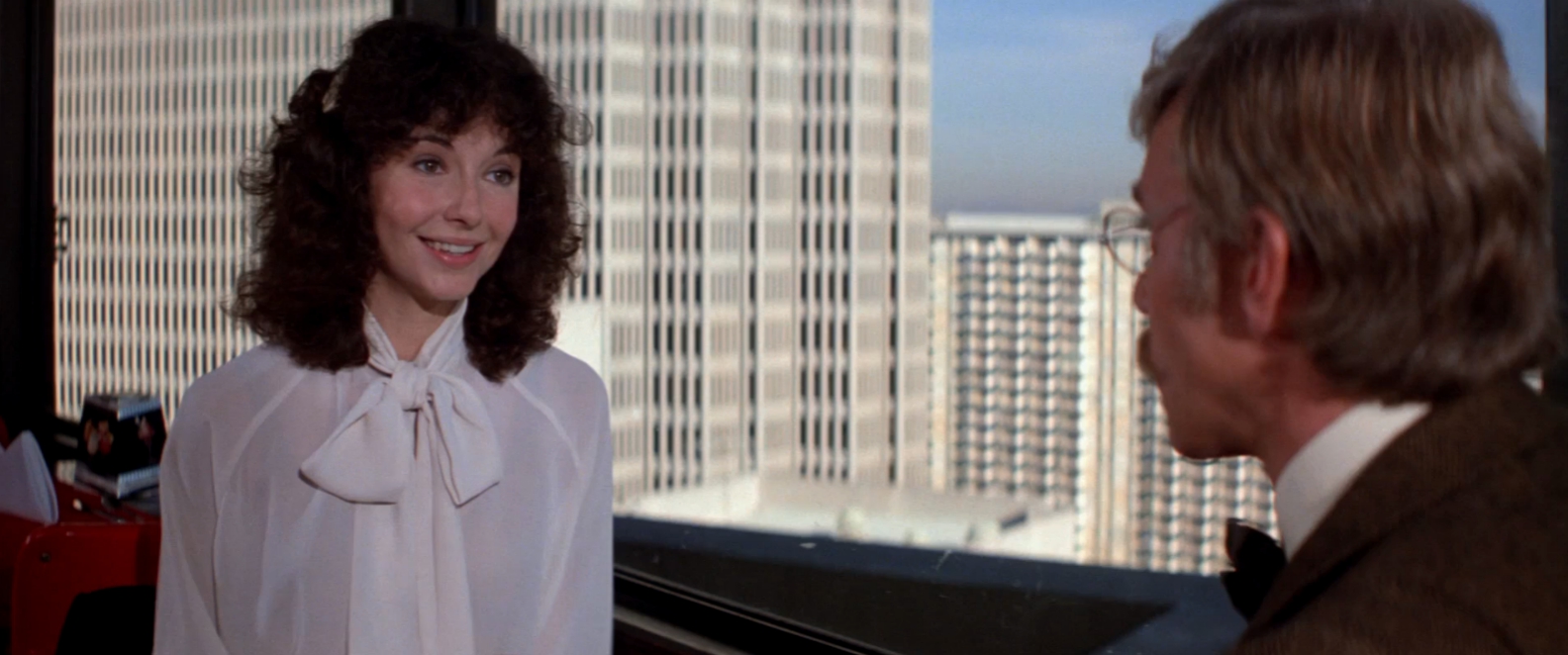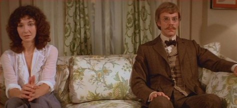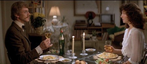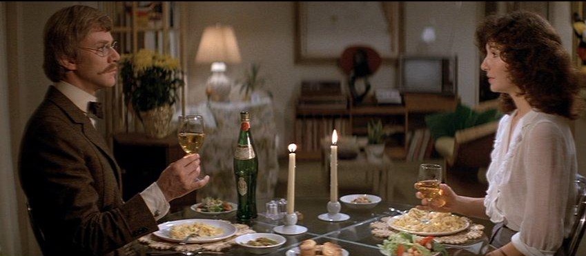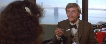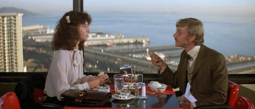On unsteady legs, in a San Francisco where she shakily speaks of another quake to match the big one back in ’06, Steenburgen, subsisting in a state of constant self-analysis, possesses all the nervous edge of one of Woody Allen’s New York neurotics. Tapping into the Me Generation zeitgeist of existential anxiety, she’s unsure whether she’s being self-assertive or pushy by asking the old-fashioned Wells out to dinner at a restaurant that slowly spins round on its axis, like the Space Needle. The shifting scenery behind them, as the camera angle switches from one to the other, serves as an ideal metaphor for how disconcerted the two are, trying to