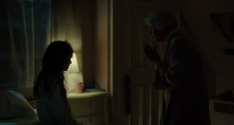 Olivia O‘Neill, who plays one of the afflicted girls, Katherine, seems to have been specifically cast due to her strong resemblance to a little Linda Blair. And through shrewd framing, makeup and shadowy low-lighting, the movie tries to blur our memories of the original