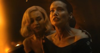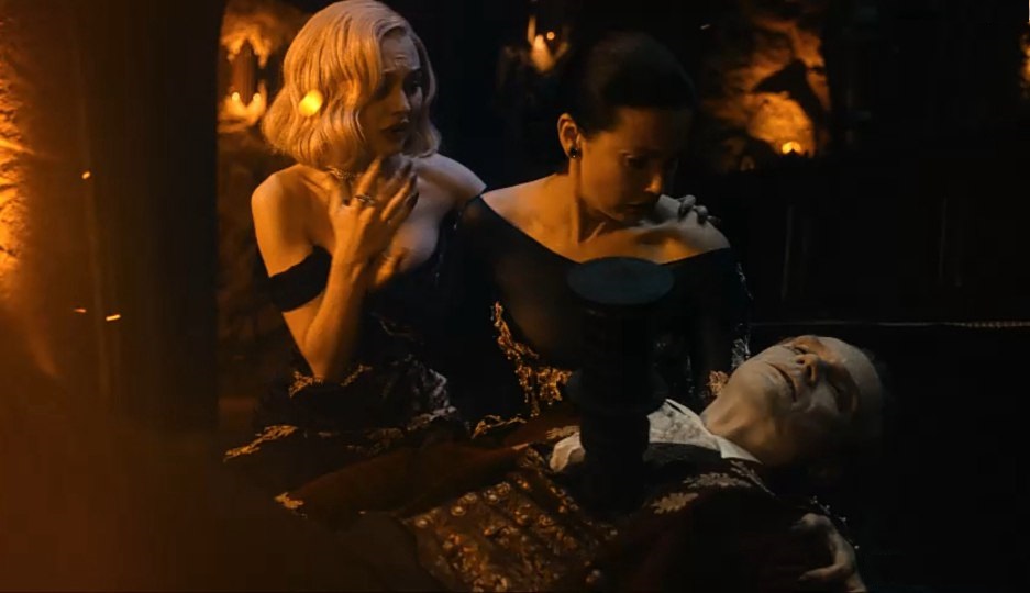 Another scene that’s clearly signaled and prepared for, never comes to pass at all. Learning that Evie makes ceramics, we keep waiting for a reworking of that iconic pottery bit from Ghost to somehow worm its way into proceedings. But we’re just set up for disappointment. And with all the talk about those carnivorous shrikes, birds that actually impale their prey on thorns, the obvious correlation that seems to be intended, with killing vampires with wooden stakes, is never made explicit. Not even at the end when Alana Boden’s agreeably chirpy, little blond Lucy impales both herself and Stephanie Corneliussen’s nasty, tall, dark Viktoria simultaneously, the two women going together, after the story has tried to reconstitute Dracula’s trio of brides from Stoker’s original. I guess after Nicholas Hoult’s Renfield went on to reimagine the character as a basket case trying to break free of his co-dependent relationship, it shouldn’t seem too outlandish that The Invitation cast its harem in terms of feminist self-realization, with Evie balking at the thought of being relegated to the third wheel of a throuple (“Three perfect little dolls for the master.”), instead opting for the van Helsing route. The relationship between Evie and self-assertive Grace, in which one always seems to have been shunted into the subsidiary role of the dominant partner’s sidekick, at least until the roles are reversed at the end, isn’t satisfactorily fleshed out either. Though it seems meant to mirror, to some degree, the similar power dynamics between Lucy and Viktoria (“It’s enough. You don’t tell me what to do anymore!”).