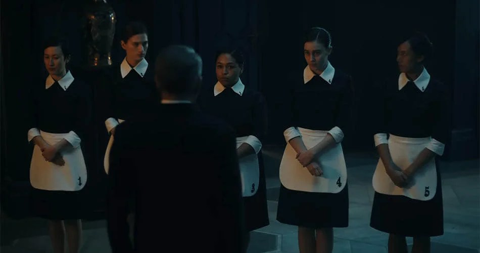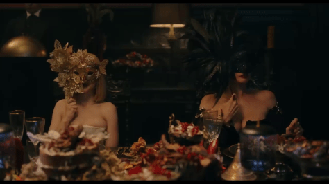 To underline the point, the maids here appear to have been specifically cast to represent a cross section of ethnic types. Like Evie herself, this makes them seem equally suggestive of a threatening outside influx, an uptick in unwanted immigration to British shores. As such, they’re also regarded as low-skilled labor to be exploited by companies who can get away with paying them under the table at minuscule wages. In anti-Capitalist propaganda, the titled and aristocratic are frequently depicted as literal bloodsuckers, subsisting off the labor of the proletariat class as if they were beasts of burden. They’re drained to the last drop of their blood, sweat and tears, same as other exploited groups historically have been. And when their bodies are broken by their backbreaking labor and can serve no further purpose, they’re led to the slaughter, like the draught horse on Animal Farm. So, it’s just a slight leap to depict these aristocrats as literally feeding off the help, as they do here. The Invitation seems intent on reviving our oldest fears about decadent, debauched and decaying Old World aristocracies.